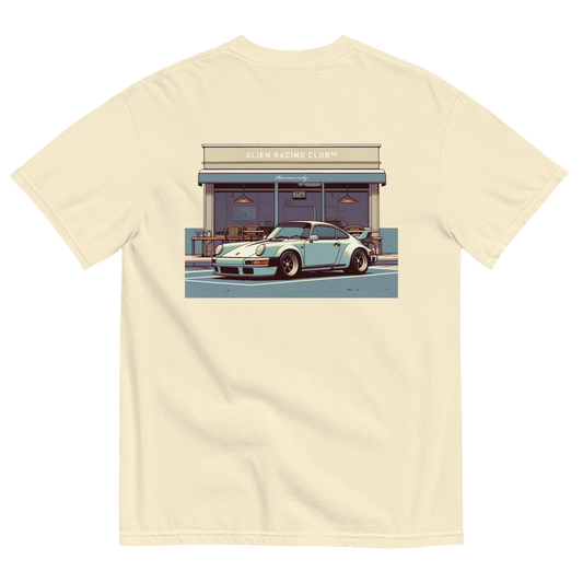 Timeless lines of a 911., the smell of morning coffee, ivory-hued tee shirt. Get yours now.